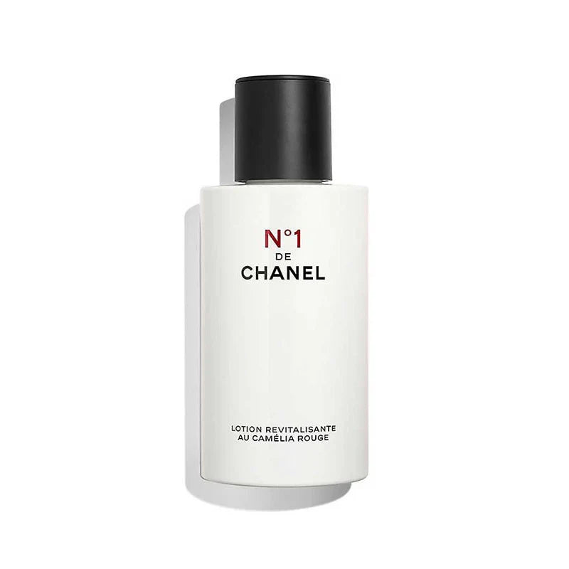 The N°1 DE CHANEL lotion is a skincare product for the face and décolleté enriched with red camellia extract, an active ingredient that boosts cellular vitality, and camellia water. Its formula contains 97% naturally derived ingredients and 48% camellia-derived ingredients. It instantly leaves the skin energised and keeps it looking youthful, for an overall healthier appearance .