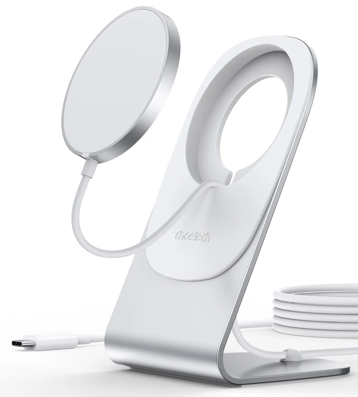 CHOETECH Magnetic Fast Wireless Charging Stand Holder with 5ft USB-C Cable for iPhone 12 (H047+T517) T511-S