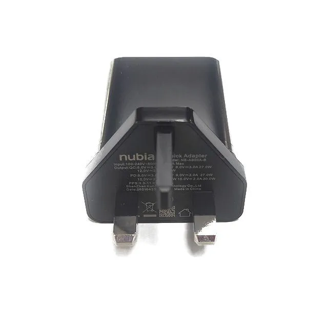 Experience a world of efficient charging with the Nubia Quick Adapter 30W. This power adapter, with its sleek shape and subtle color, is designed to complement any setting. The adapter is made from durable material, ensuring its built to last. Its gender-neutral design makes it a perfect accessory for everyone. The Nubia Adapter features a Type-C port, an upgrade from the traditional ports, providing quicker and smoother power transmission. The lens color is thoughtfully selected to match the overall aesthetic of the power adapter, giving it a sleek and modern look.